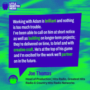 Little Monster Media are an audio branding and imaging production company founded by Adam Venton. Their specialities include audio imaging and sound design FX for radio, podcasts, video, social media, online, audio production and services across the globe.